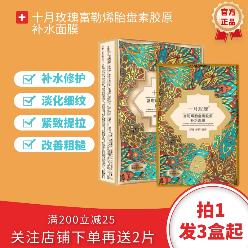 正品十月玫瑰富勒烯胎盘素胶原补水面膜二裂酵母保湿紧致修护精华