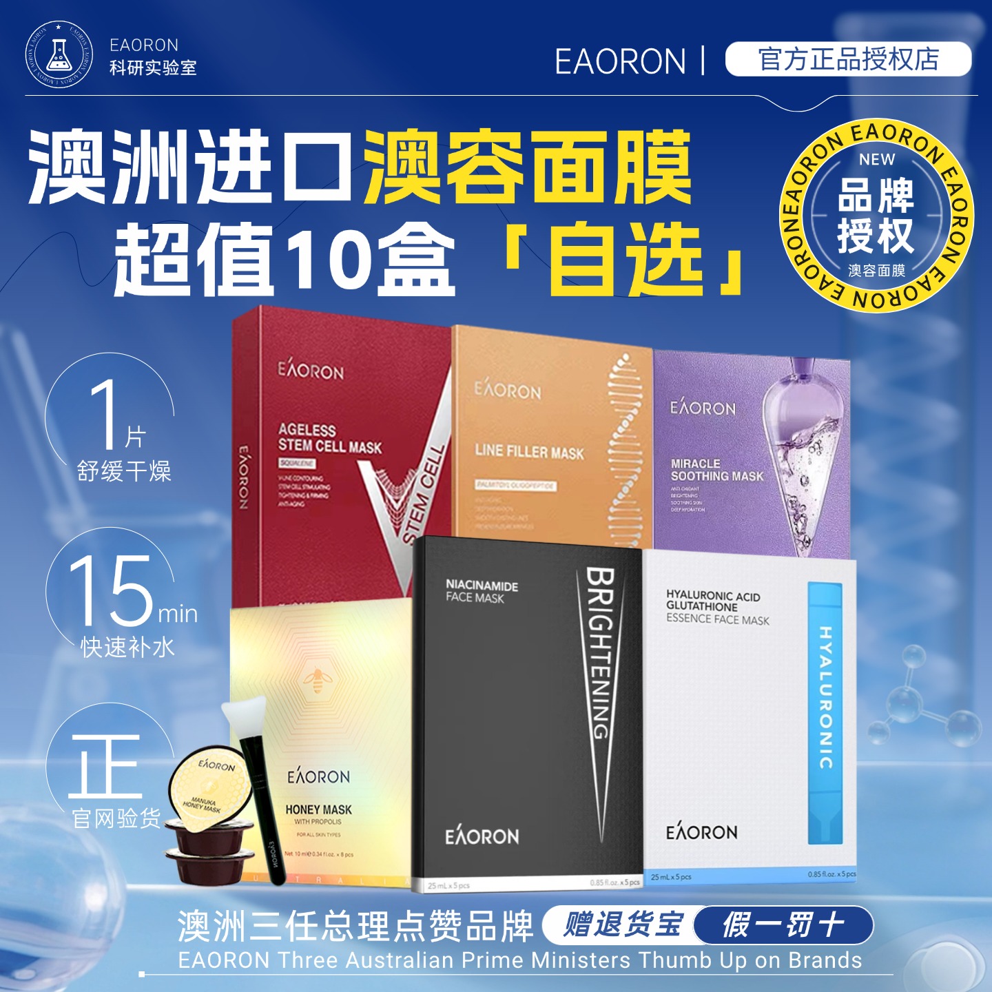 【10盒促销】澳洲eaoron澳容玻尿酸谷胱甘肽水光面膜旗舰店正品
