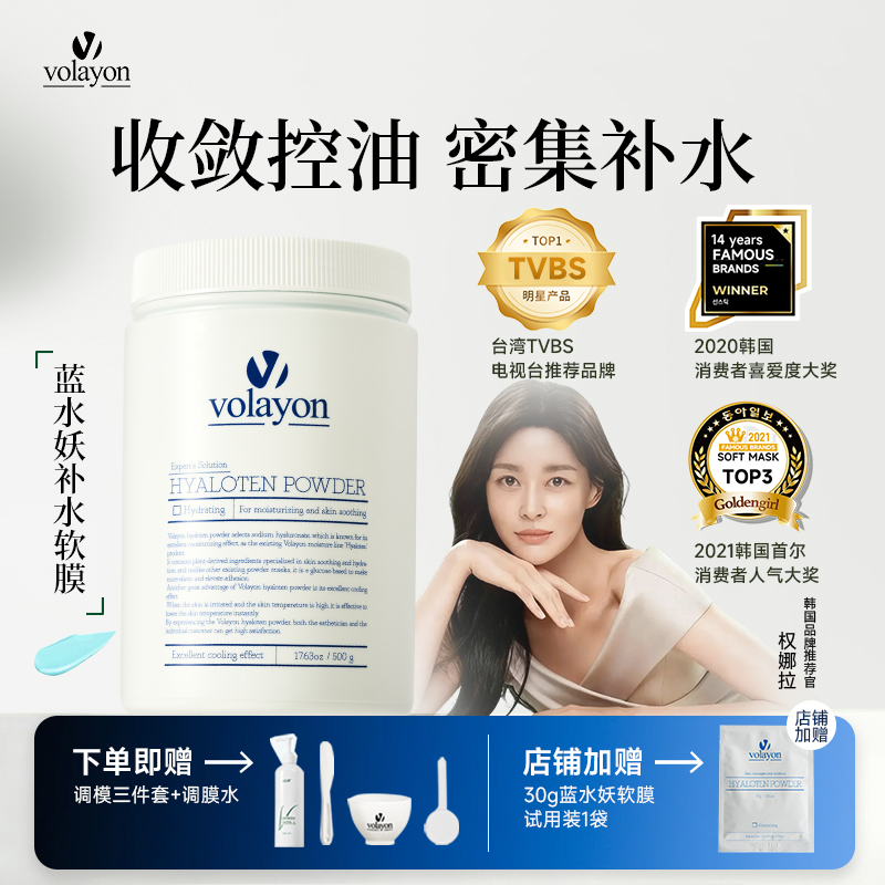 VOLAYON韩国蓝水妖软膜粉超补水修护美容院专用玻尿酸涂抹式面膜