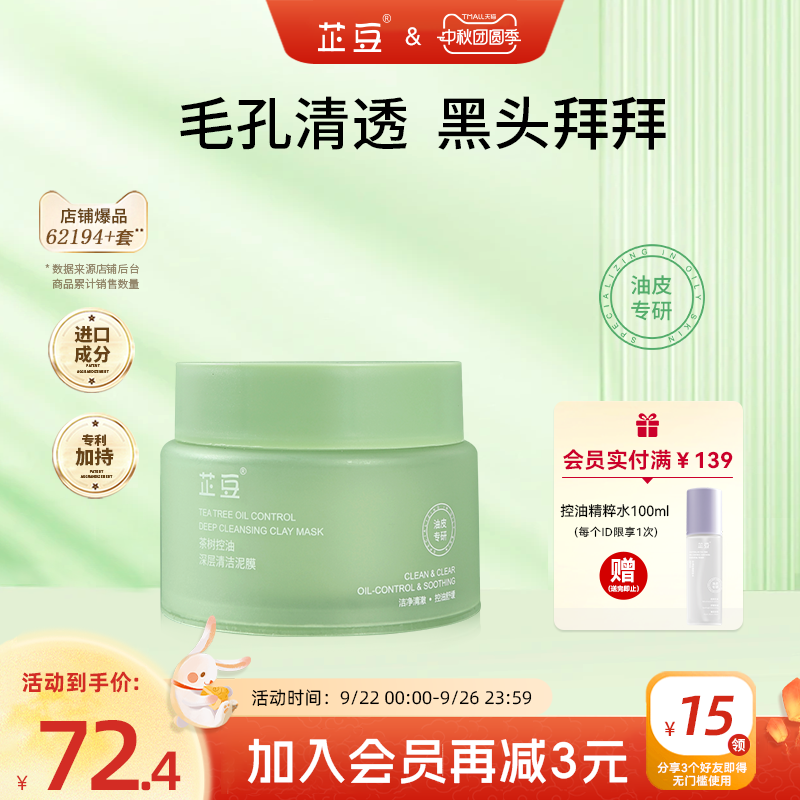 芷豆官方旗舰店茶树泥膜清洁面膜深层补水粉刺闭口收缩毛孔学生