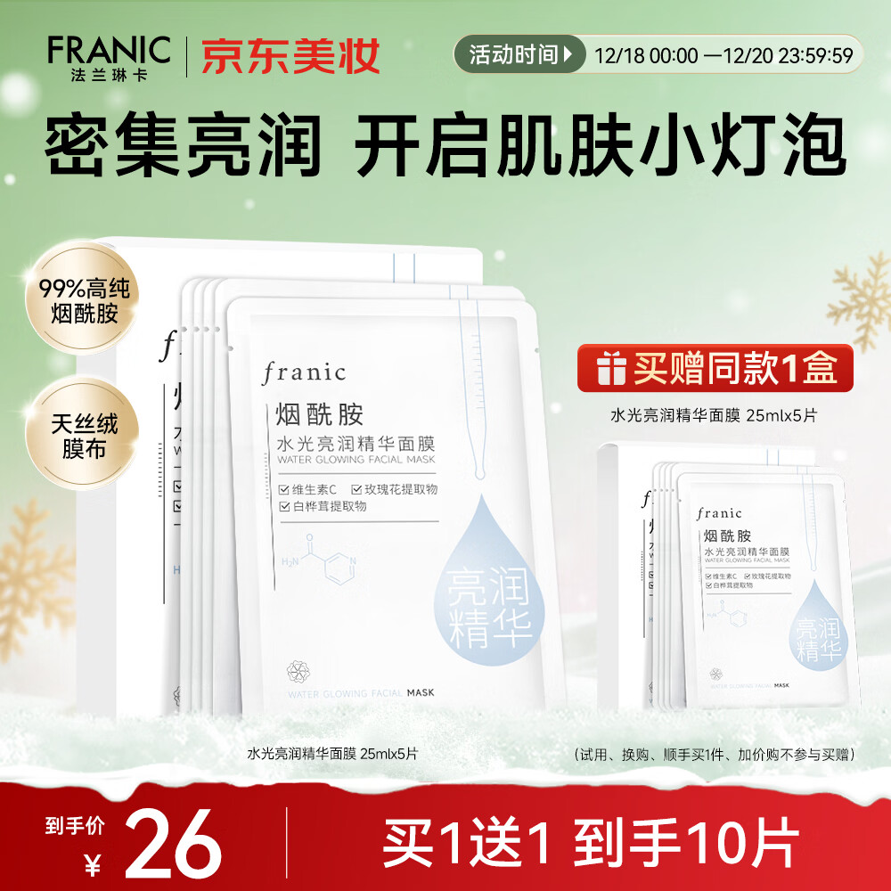 法兰琳卡水光亮润精华烟酰胺保湿面膜25mlx5片深润补水舒缓提亮肤色学生党