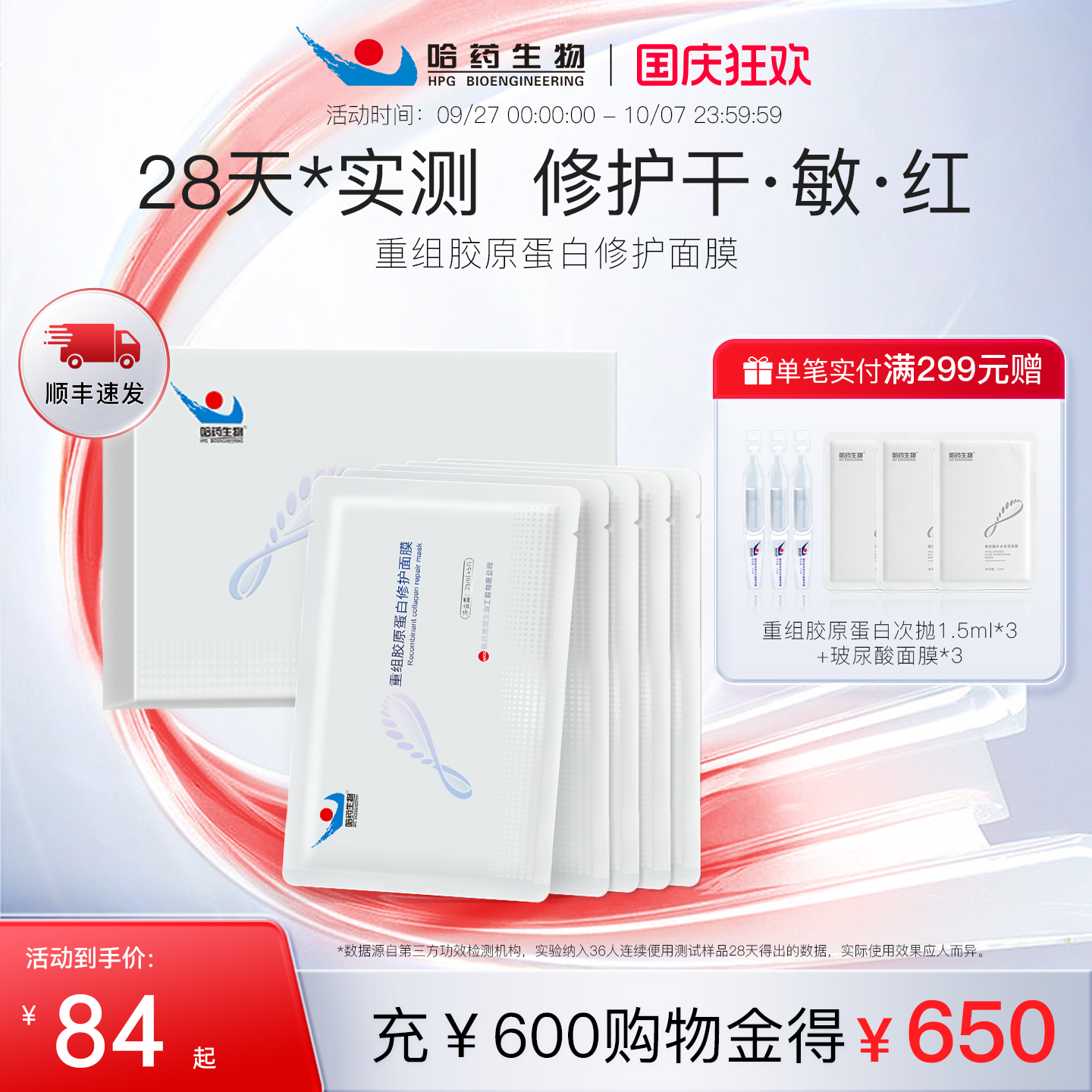 哈药生物重组胶原蛋白修护面膜淡纹抗皱舒缓保湿深层修护敏感肌