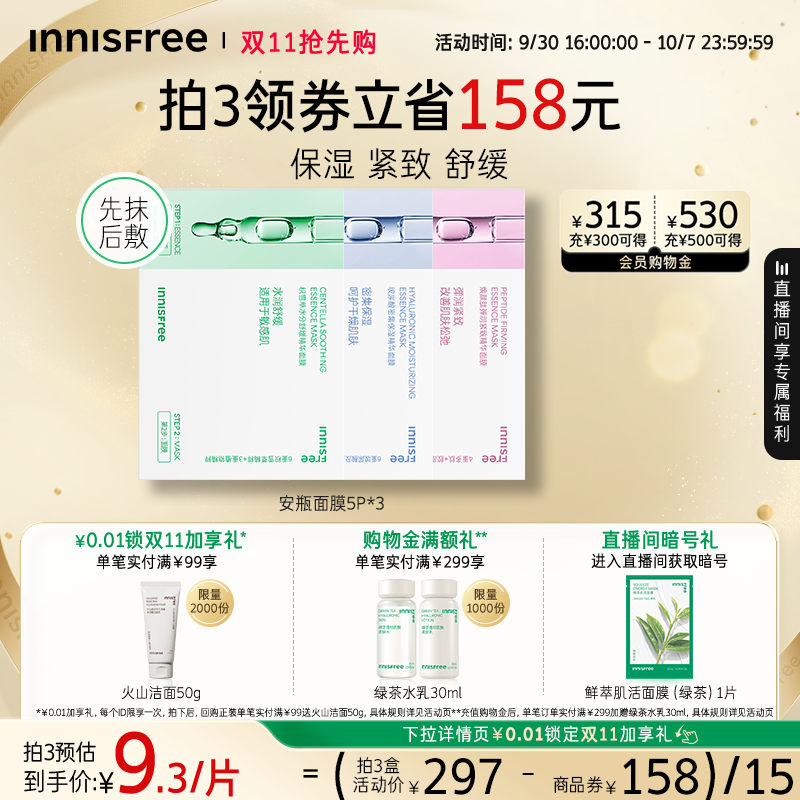 【官方正品】悦诗风吟安瓶精华面膜保湿紧致舒缓