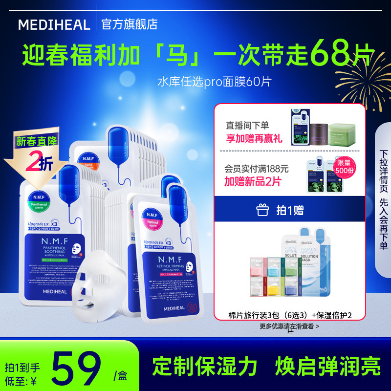 美迪惠尔可莱丝nmf水库pro升级面膜补水保湿光泽肌肤男女60片