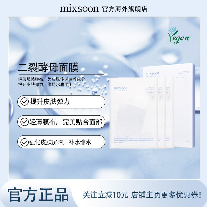 HBN酵母面膜水光嫩三重蛋白多效玻尿酸补水保湿修护贴片面膜5片