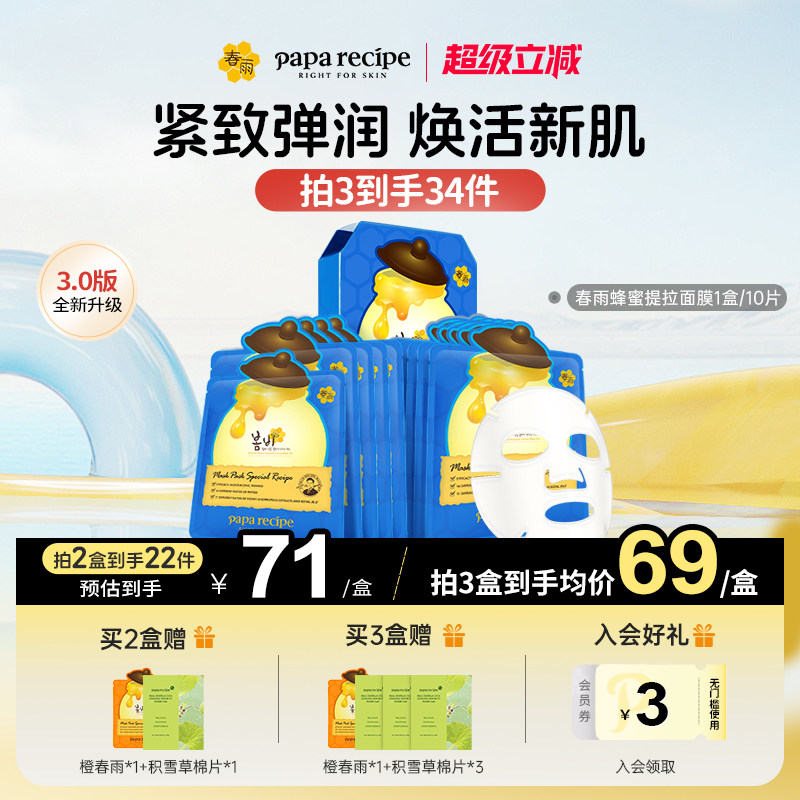韩国春雨蜂蜜提拉面膜蓝10片淡化细纹紧致滋养【效期至27年2月】