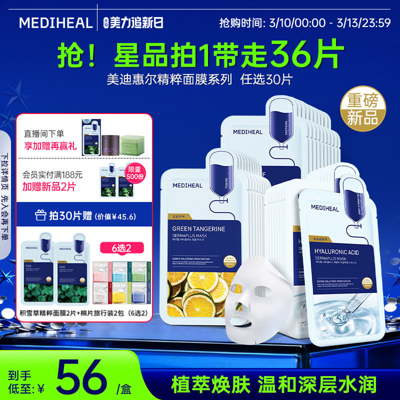 【精粹任选3件】美迪惠尔官方旗舰店补水美白植物精粹舒缓面膜