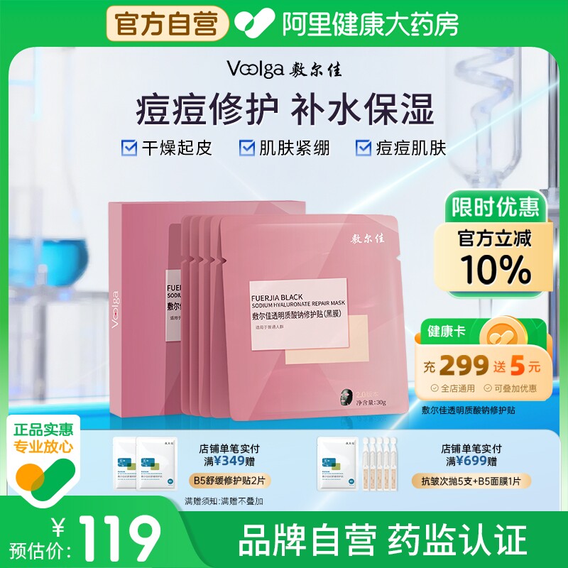 敷尔佳面膜透明质酸钠修护贴黑膜补水保湿滋润肌肤敏感肌