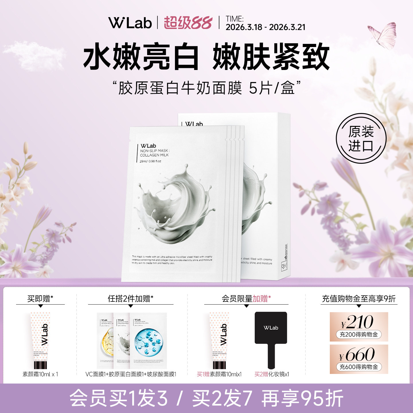 W.Lab大福留韩国胶原蛋白牛奶面膜补水紧致亮白官方旗舰店正品