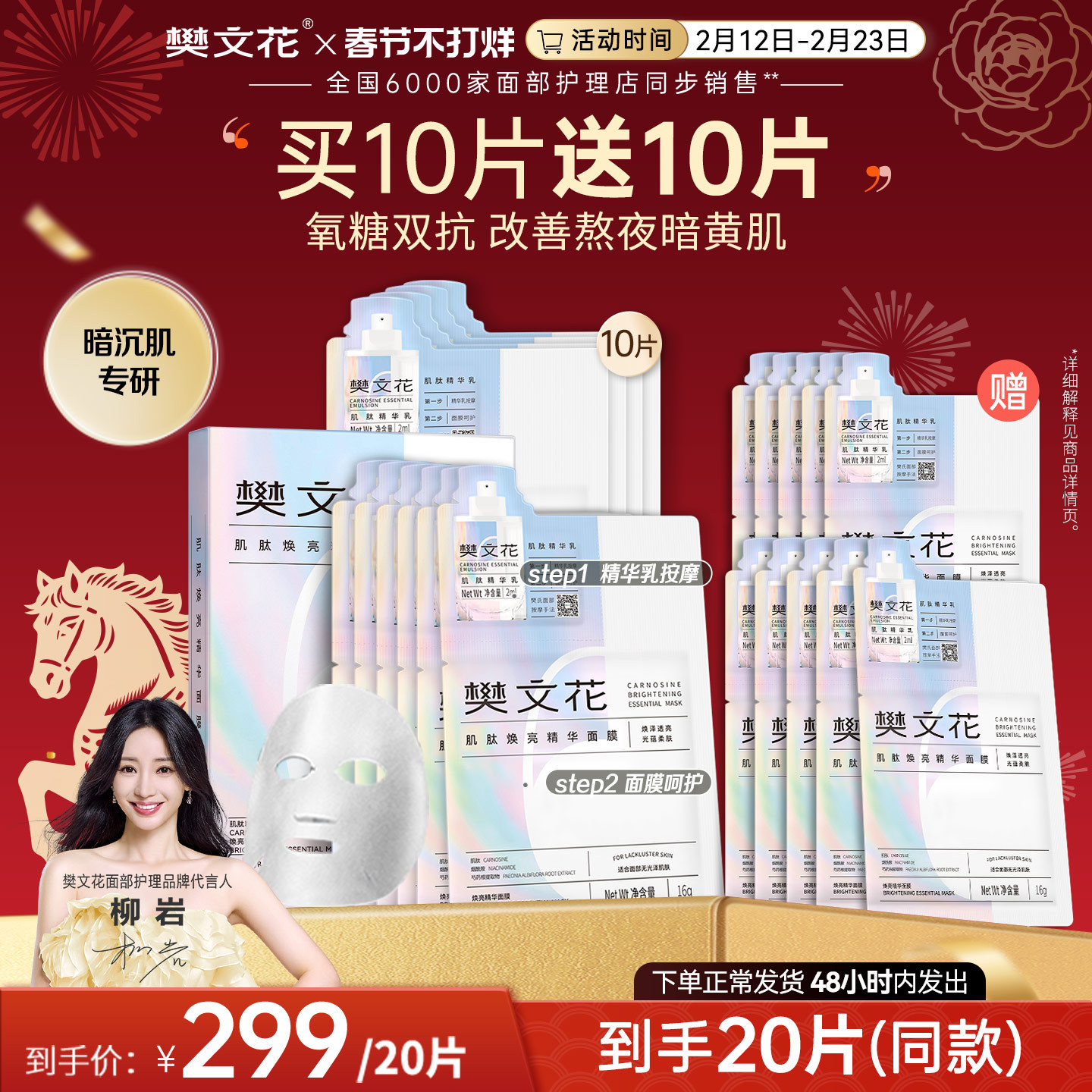 烟酰胺润透修护面膜贴10片盒装提亮肤色蚕丝免洗补水保湿官网正品