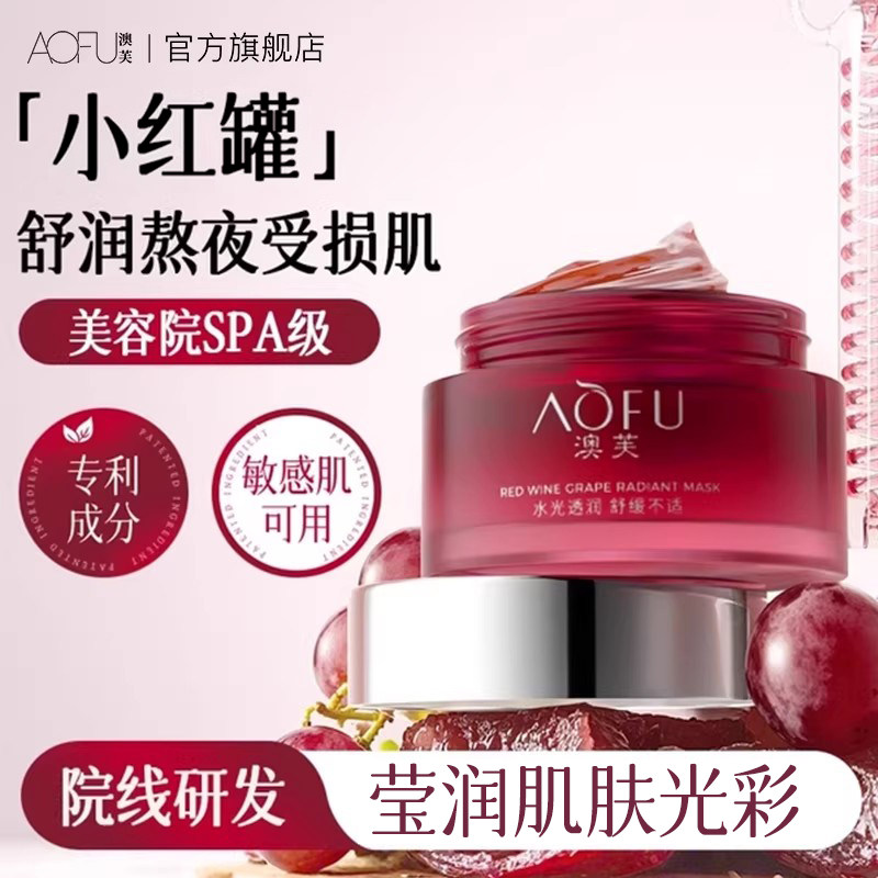 澳芙红酒葡萄面膜熬夜暗黄脆弱红敏睡眠涂抹式面膜aofu官方旗舰店