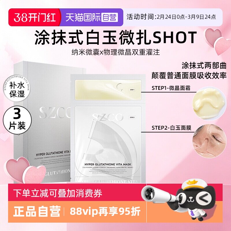 【自营】SZCO丹宜诗谷胱甘肽白玉微针面膜3片/盒涂抹脸部水光保湿