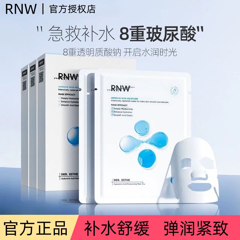 RNW如薇玻尿酸熬夜补水面膜保湿滋润提亮肤色改善暗沉官方正品男