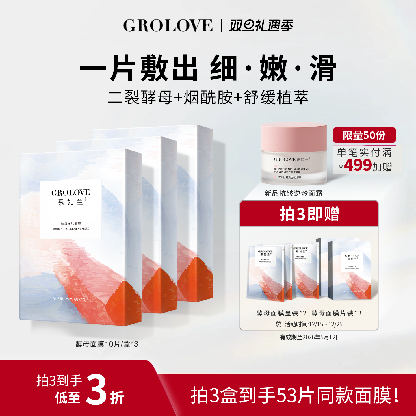 歌如兰酵母神仙水面膜熬夜舒缓补水保湿嫩肤肌底液贴片面膜