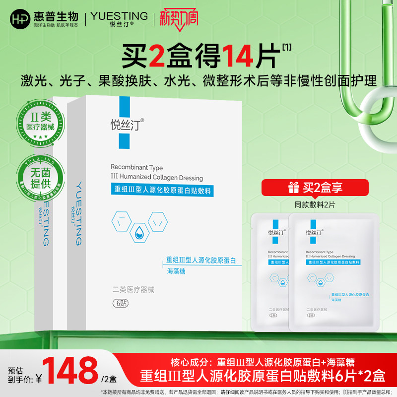 悦丝汀医用胶原蛋白敷料皮肤屏障术后无菌敷贴冷敷贴械字号非面膜