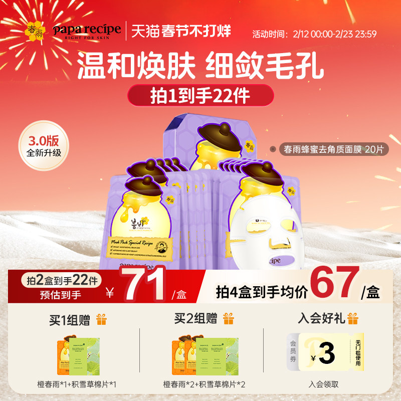 韩国原装紫春雨蜂蜜面膜20片补水保湿改善黑头角质官方旗舰店正品