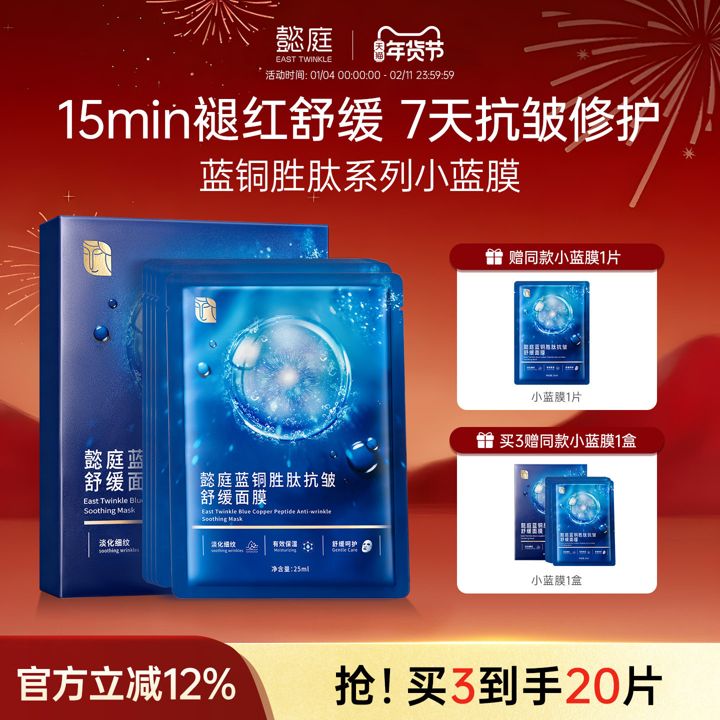 懿庭蓝铜胜肽抗皱紧致面膜女士补水保湿淡化细纹舒缓面部面膜