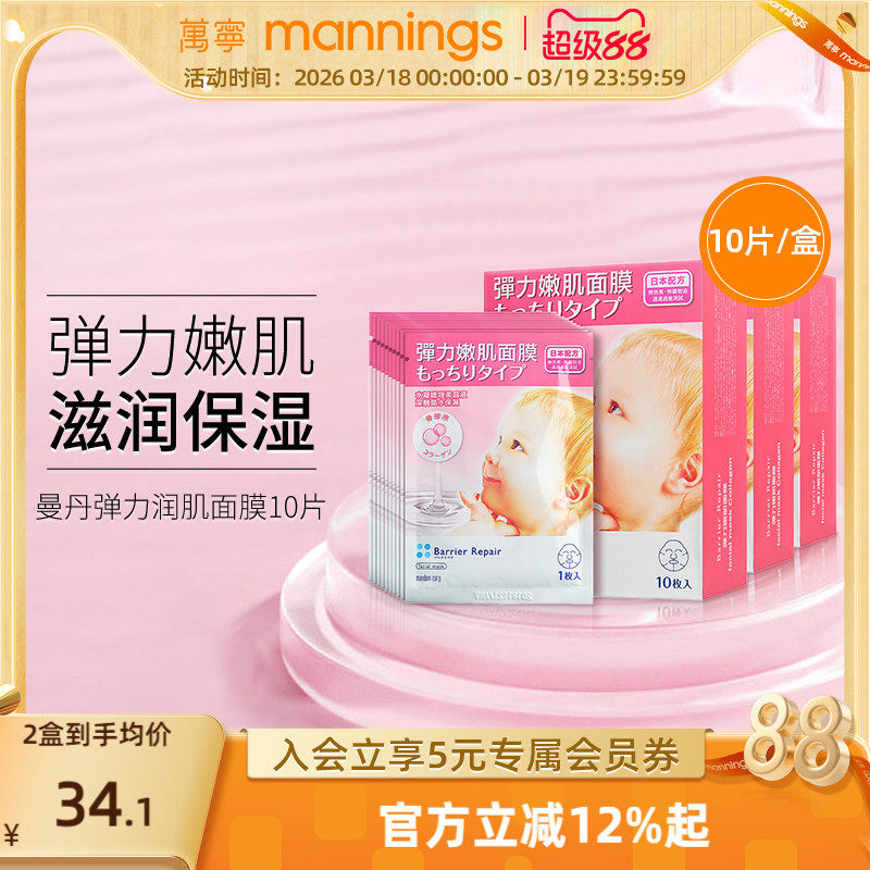 万宁曼丹骨胶原保湿面膜10片装 修护补水嫩肌啫喱舒缓弹力