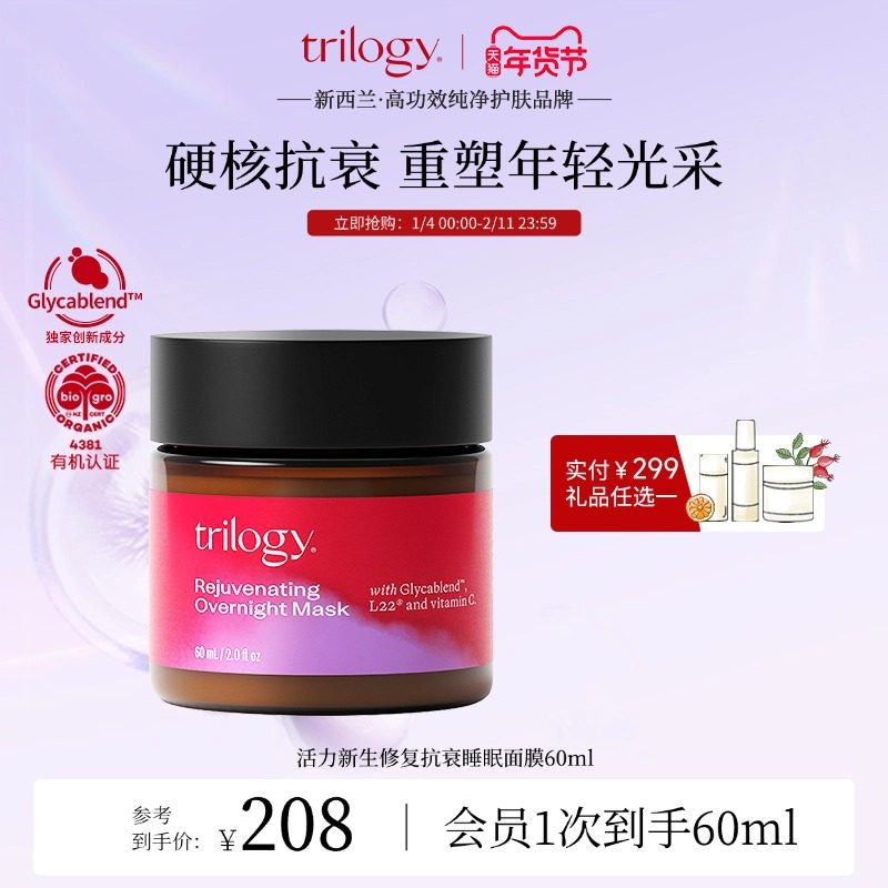 [新西兰进口]trilogy 萃乐活活力新生修复抗衰睡眠面膜60ml修护