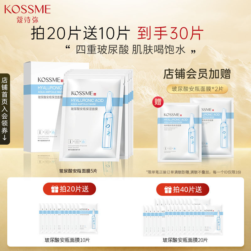 KOSSME/蔻诗弥玻尿酸安瓶面膜男女补水保湿贴片安瓶精华