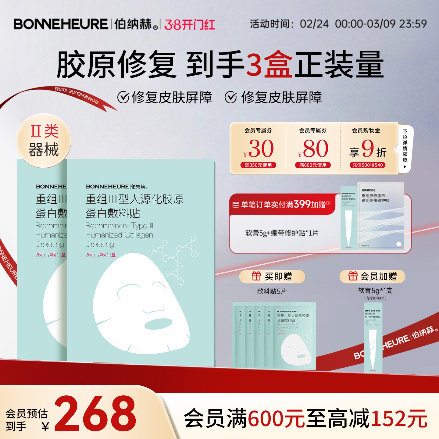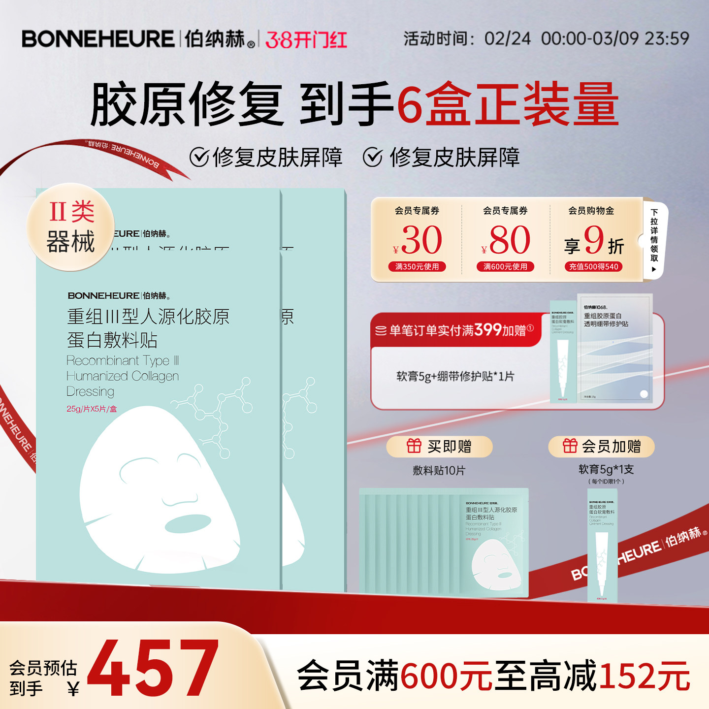 哈药生物重组胶原蛋白修护面膜淡纹抗皱舒缓保湿深层修护敏感肌