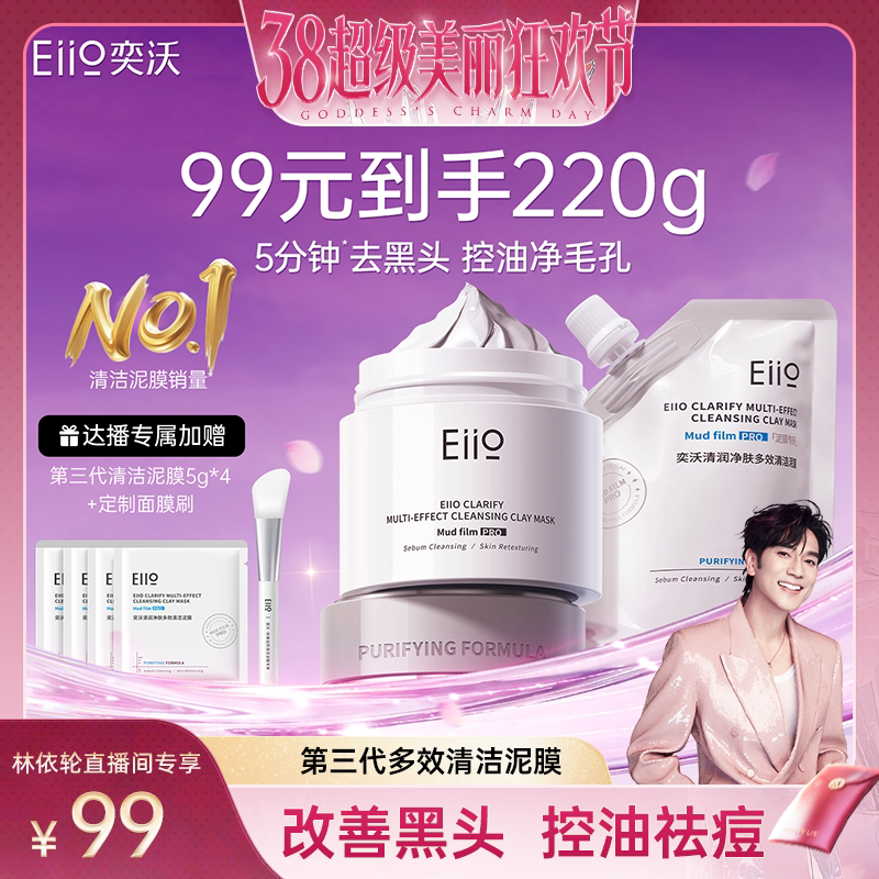 【林依轮直播间】eiio清洁泥膜去黑白头深层清洁毛孔白泥涂抹面膜