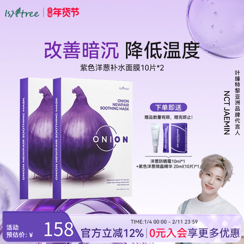 isntree紫色洋葱修复补水面膜10片*2 改善肤色暗沉降低皮肤温度