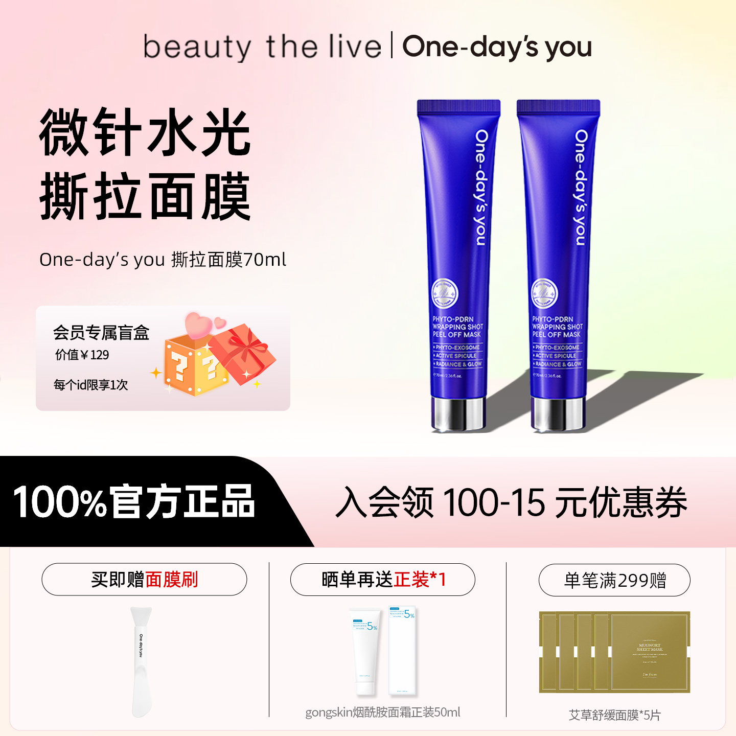 ONE-DAY'S YOU微针水光涂抹撕拉面膜滋润保湿补水紧致提亮70ml