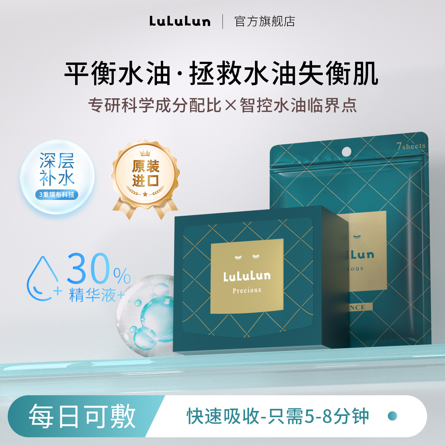lululun日本原装正品控油修护平衡水油补水收缩毛孔清洁贴片面膜