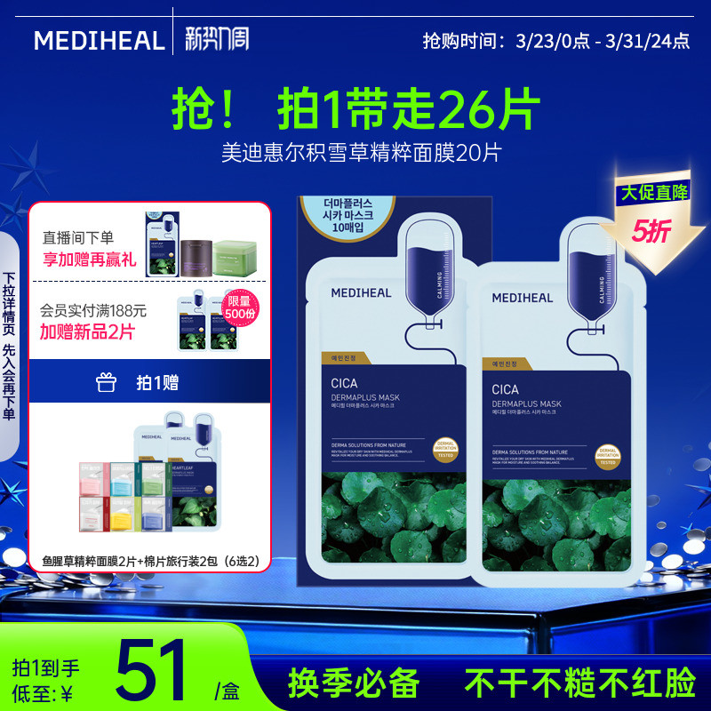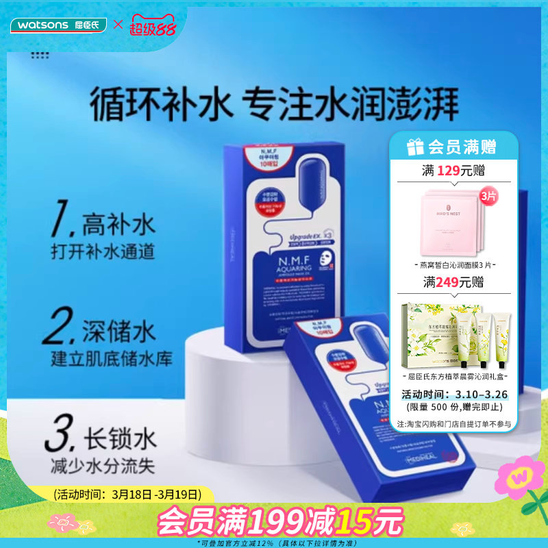 屈臣氏美迪惠尔水润保湿面膜补水舒缓光泽27mlX20片男女学生