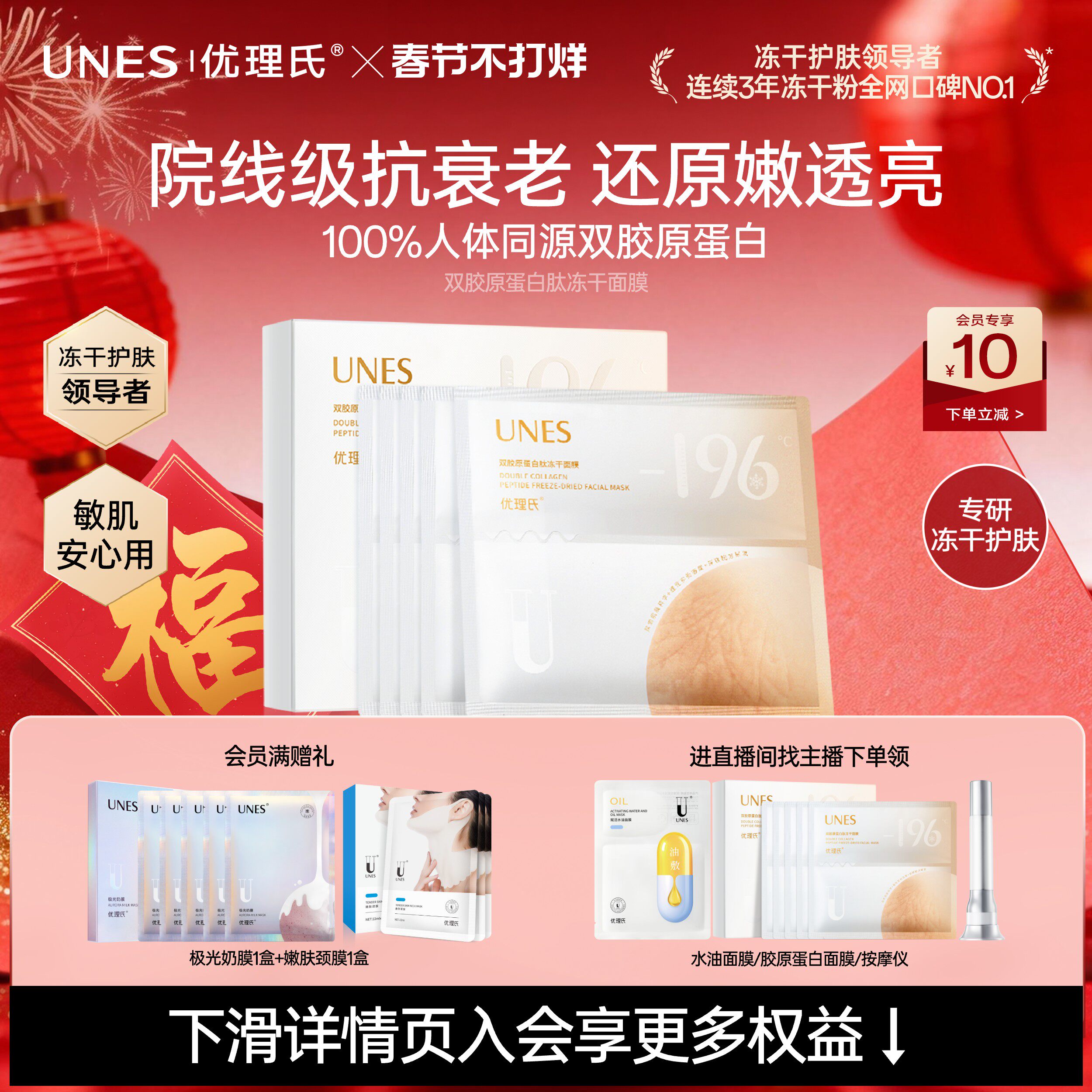 黄金胶原蛋白晚安冻膜补水睡眠面膜女免洗夜间熬夜修复急救紧致