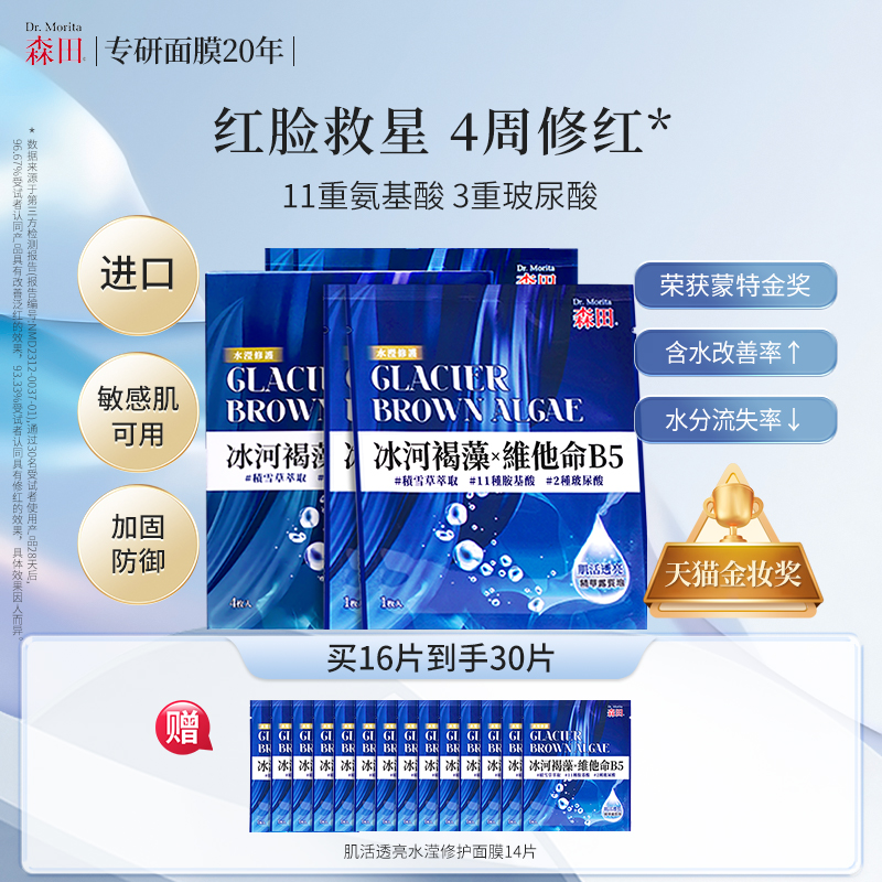 森田冰河肌活透亮水滢修护面膜修护舒缓玻尿酸补水熬夜温和保湿