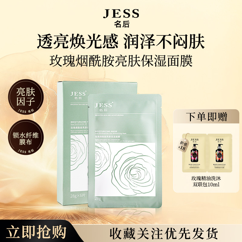 JESS名后玫瑰烟酰胺亮肤保湿面膜温和补水亲肤不刺激敏感肌男女