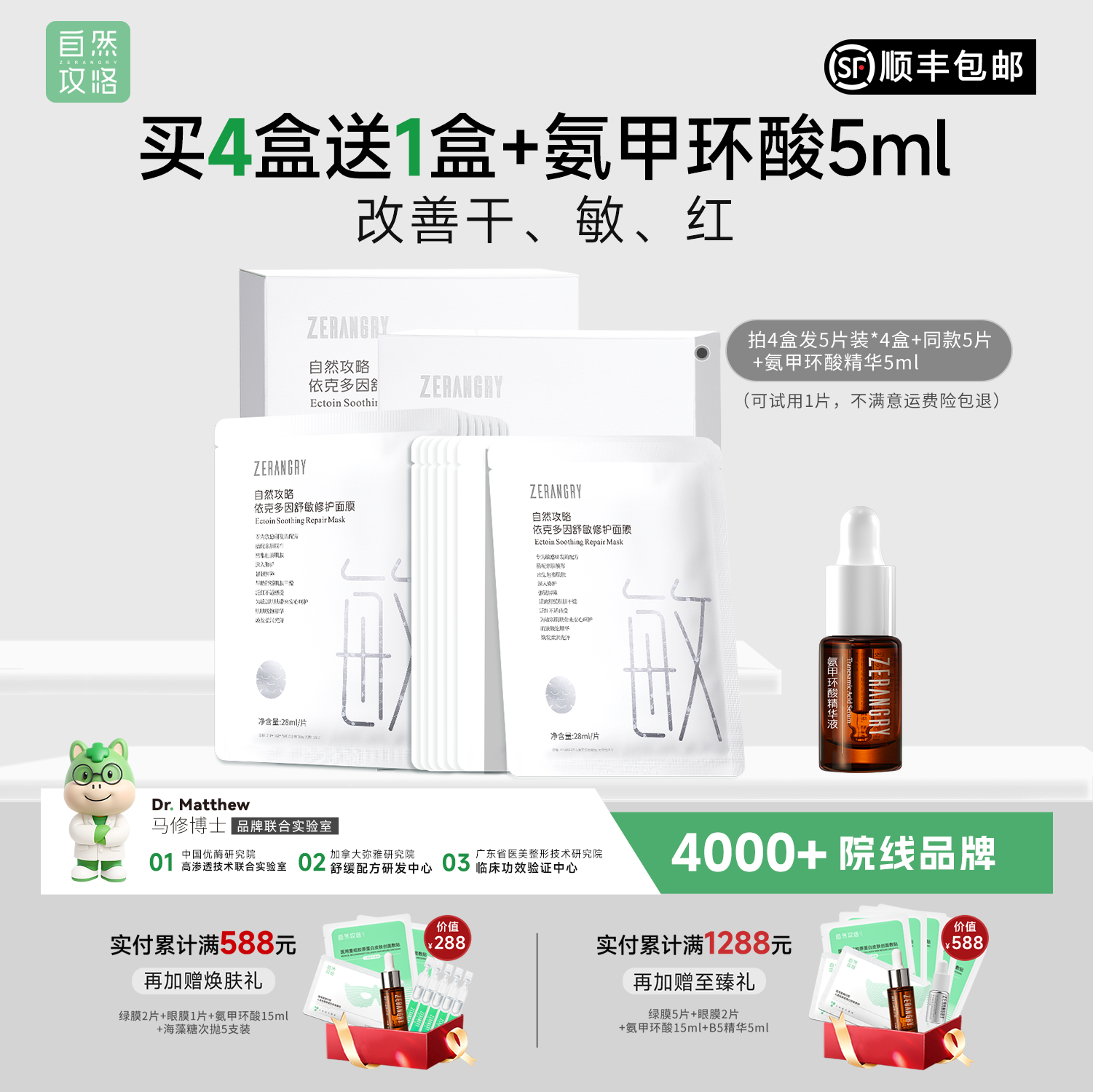 自然攻略依克多因舒敏修护面膜 敏感肌保湿补水舒缓熬夜干燥褪红