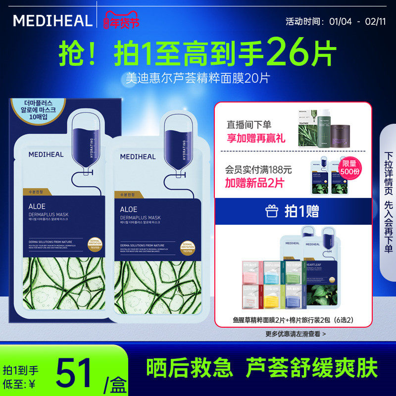 【重磅新品】美迪惠尔旗舰店芦荟精粹面膜20片爽身保湿舒缓敏感肌