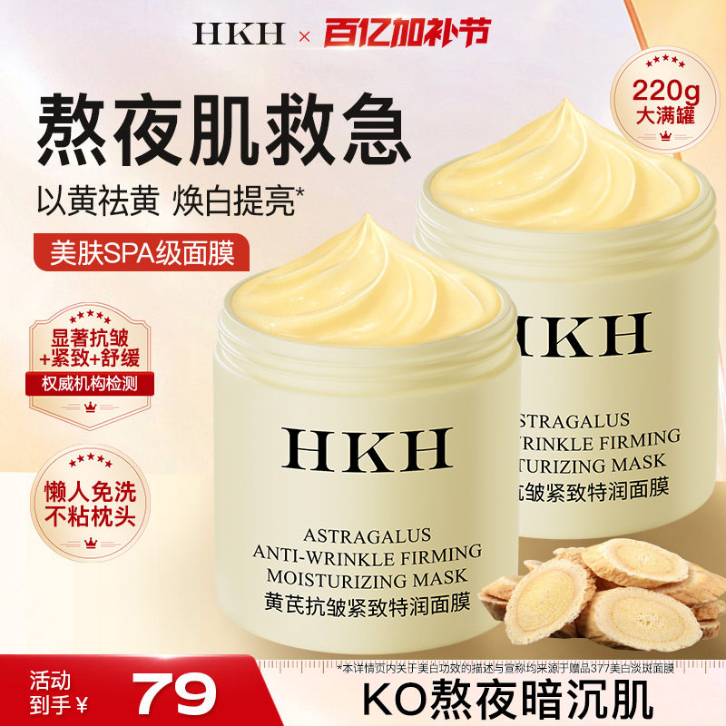 HKH黄芪睡眠面膜涂抹式免洗补水高保湿霜提亮去黄气抗皱紧致舒缓