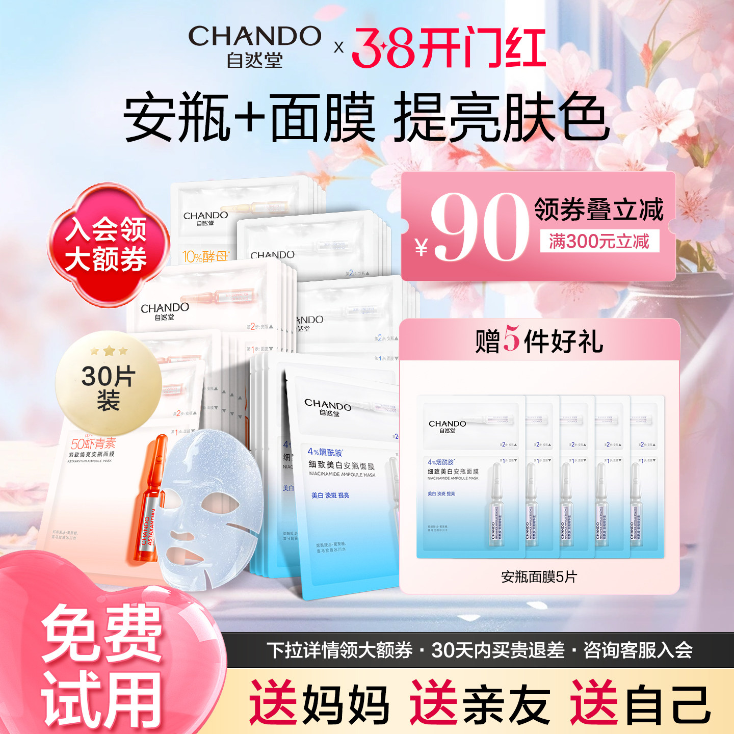 自然堂安瓶面膜女组合装烟酰胺细致提亮抗氧化补水保湿官方旗舰店