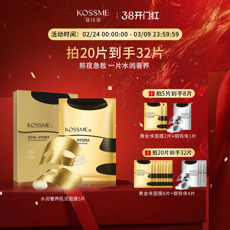 KOSSME/蔻诗弥水润奢养肌活面膜5片黄金面膜女补水保湿无惧熬夜