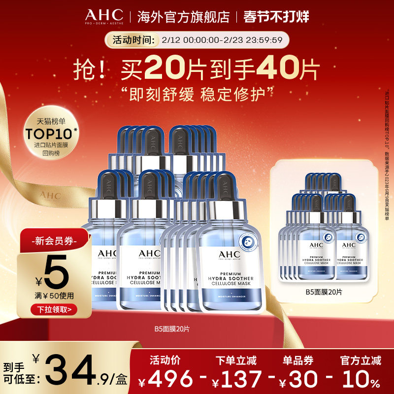 AHC 玻尿酸B5小安瓶面膜8盒囤货装舒缓保湿补水男女护肤官方正品
