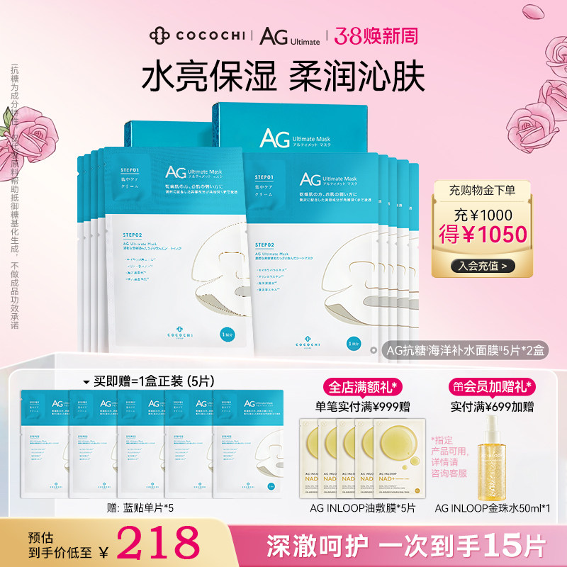 【38焕新周】cocochi日本AG抗糖面膜海洋补水保湿两部曲润泽5片