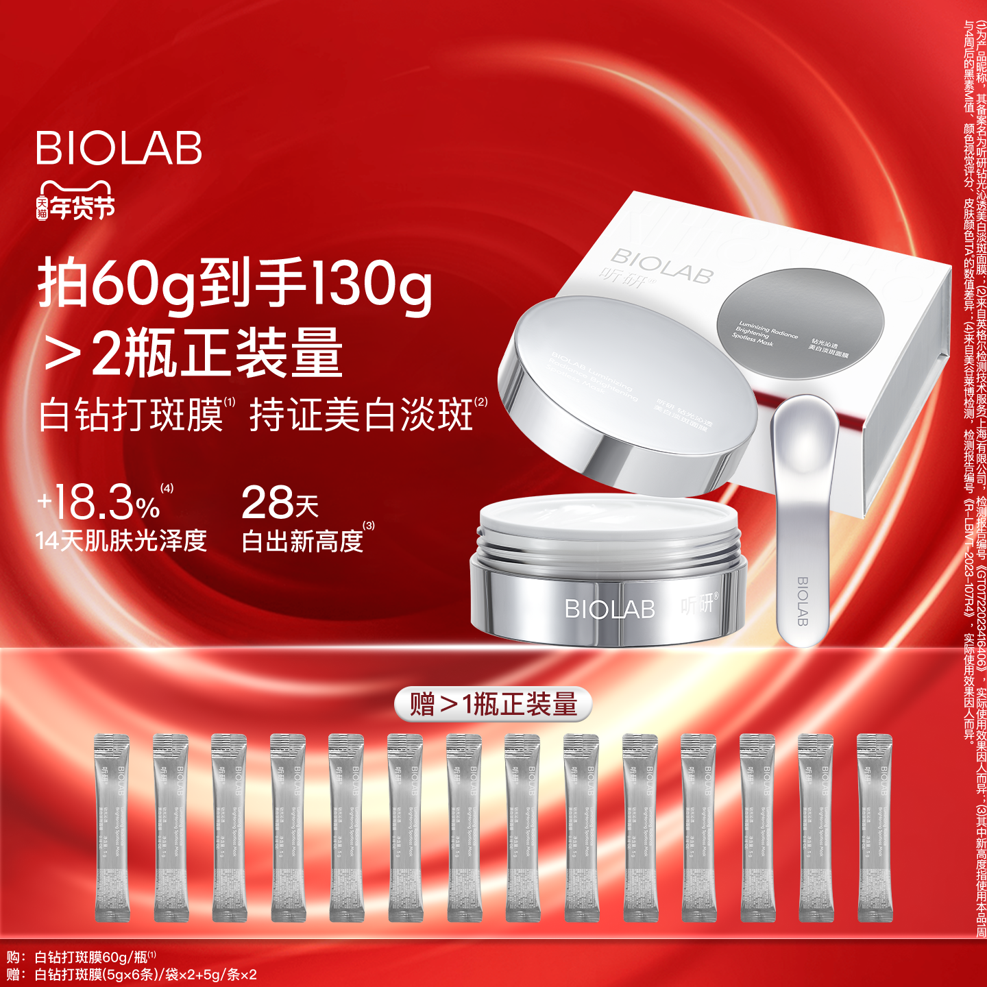 【年货节】BIOLAB听研钻光沁透美白淡斑面膜美白修护保湿