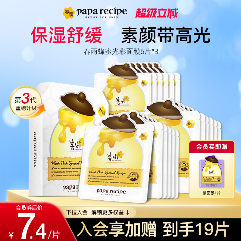 韩国paparecipe白春雨蜂蜜光彩面膜提亮焕肤3.0水润改善暗沉18片