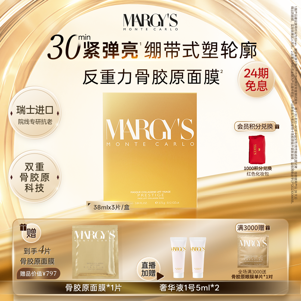 MARGY'S蒙地卡罗胶原提升紧致修护舒缓保湿骨胶原贴片抗皱面膜
