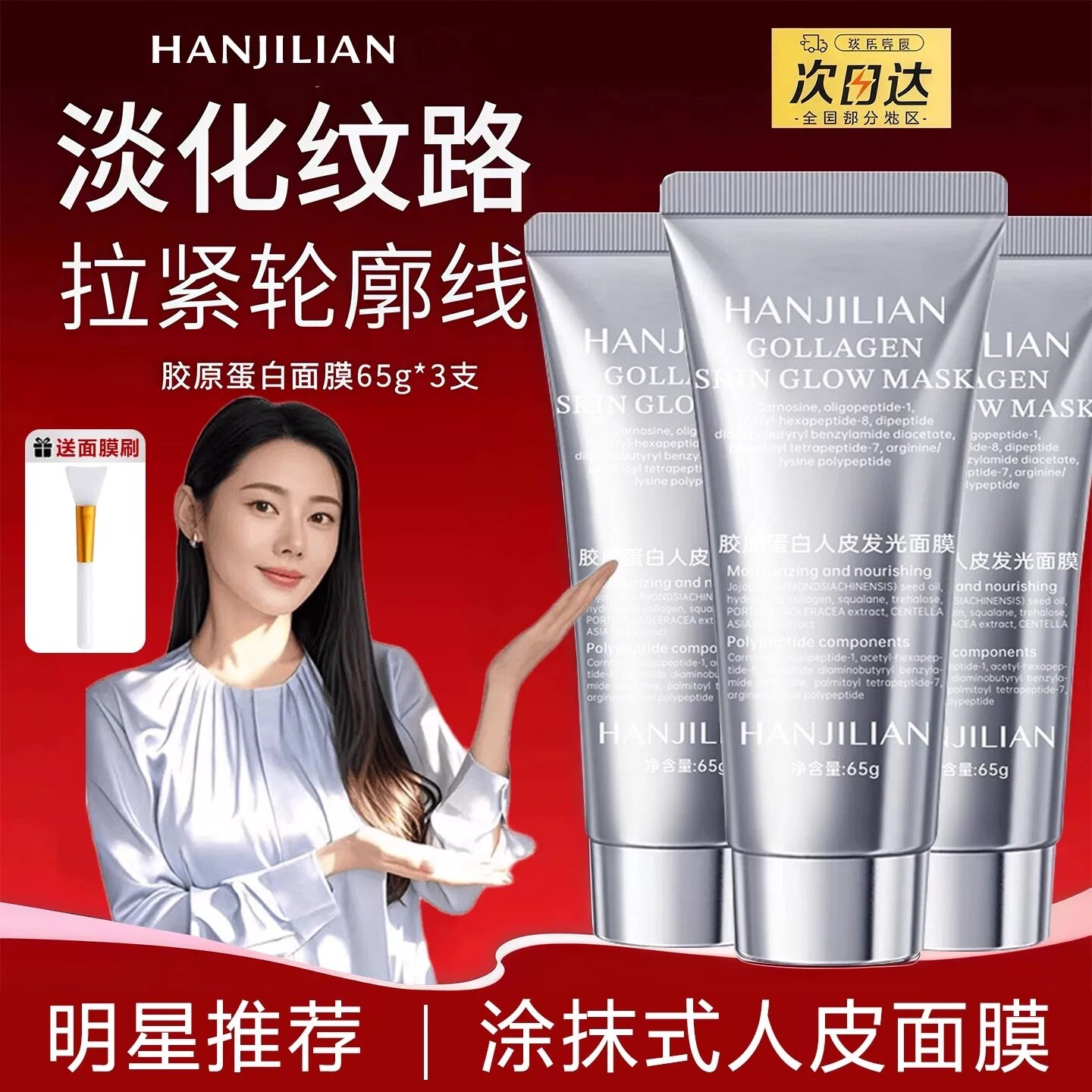 胶原发光面膜秋瓷同款胶原蛋白发光人皮面膜涂抹紧致面膜保湿紧致