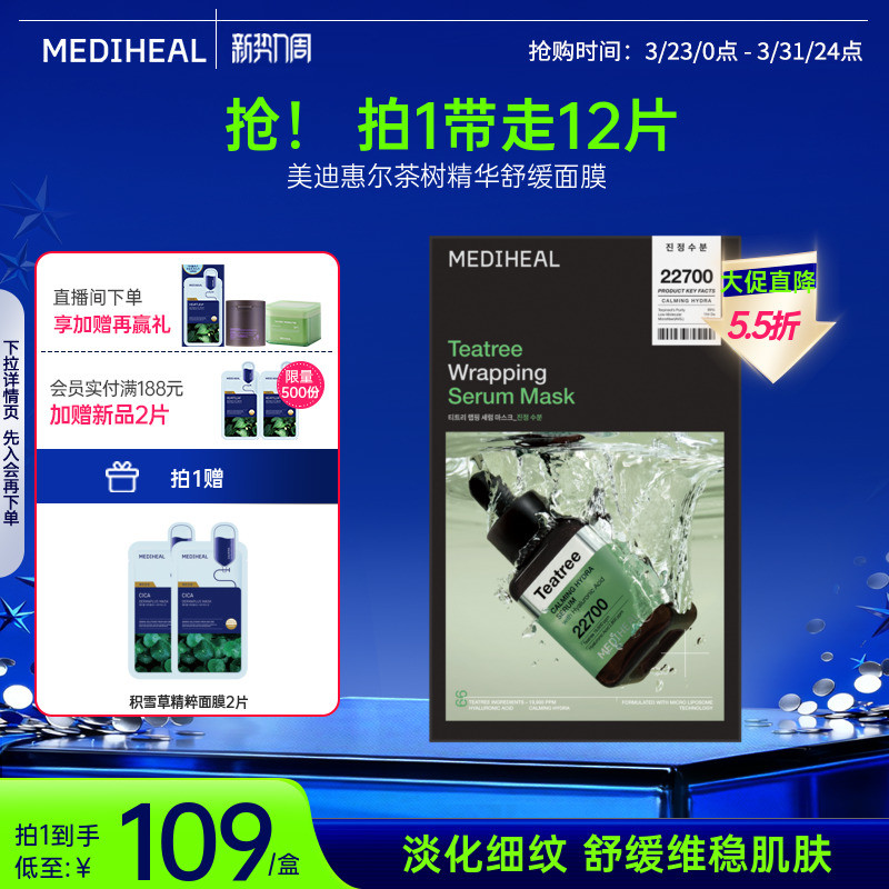 【淡化细纹】美迪惠尔茶树精华舒缓面膜水润维稳控油敏肌油痘肌