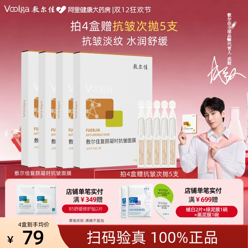 敷尔佳复颜凝时抗皱面膜紧致抚细纹补水保湿修护淡化细纹4盒正品