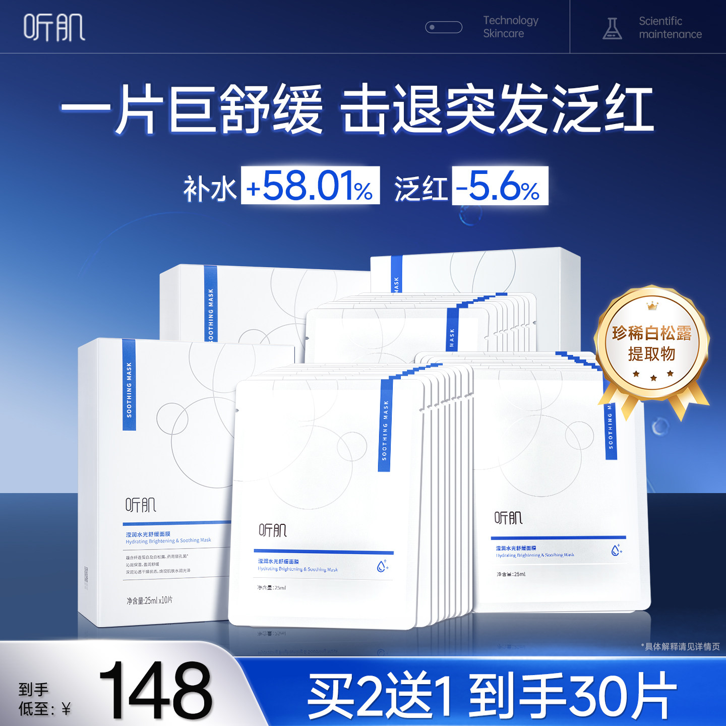 听肌滢润水光舒缓面膜保湿锁水润晚安贴片面膜30片女敏肌舒缓官方