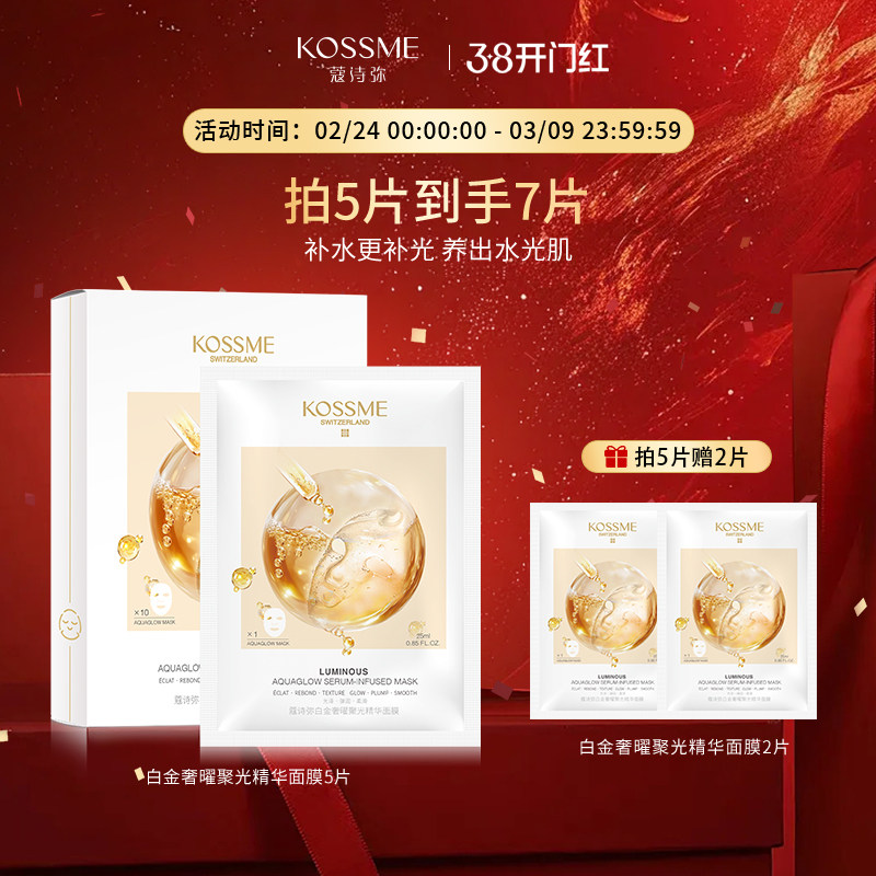 KOSSME/蔻诗弥白金奢曜聚光精华面膜补水保湿水嫩熬夜水光面膜