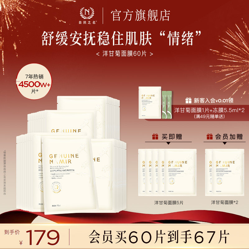 【立即抢购】自然之名洋甘菊精萃舒润面膜保湿精华女贴片面膜