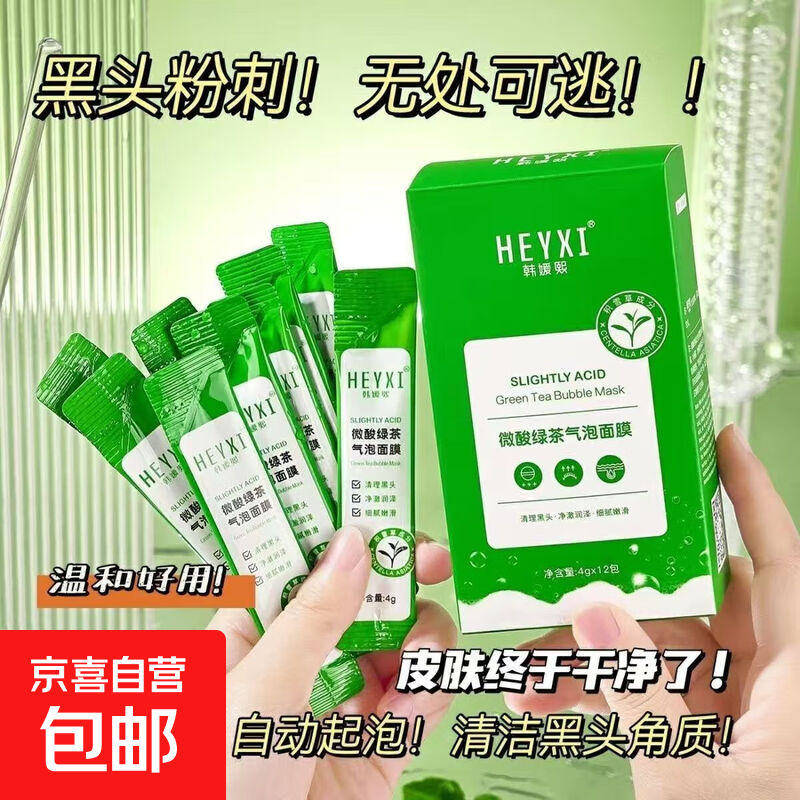 泥膜微酸绿茶小气泡面膜深层清洁去黑头粉刺清洁泡泡面膜保湿正品 绿茶气泡面膜一盒(12包)